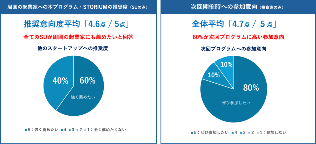 一方、投資家の皆さんには、スタートアップ各社のSTORIUM掲載ページの事前確認を徹底。ピッチ資料に加えて「AIアナライズレポート(※)」を確認し、事前に情報をインプットすることで、当日は調達方針や成長戦略といった具体的な論点から対話を始める準備を進めていただきました。